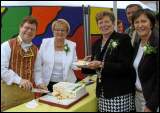 Die Torte für das 1250 jährige Jubiläum ist angeschnitten, ein wirklich gelungener Festakt. Herzlichen Glückwunsch an Bürgermeisterin Ruth Hanna Gube und an die Festausschussvorsitzende Annemarie Schuler. |